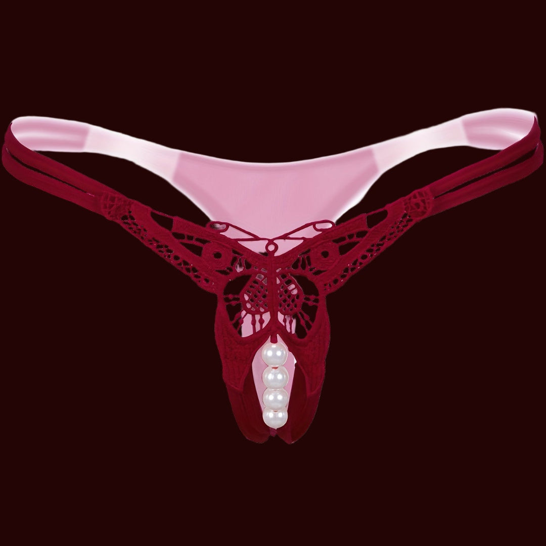 ✔️ 1 x Butterfly Embroidery Sheer Mesh Thong (Open Crotch Design)